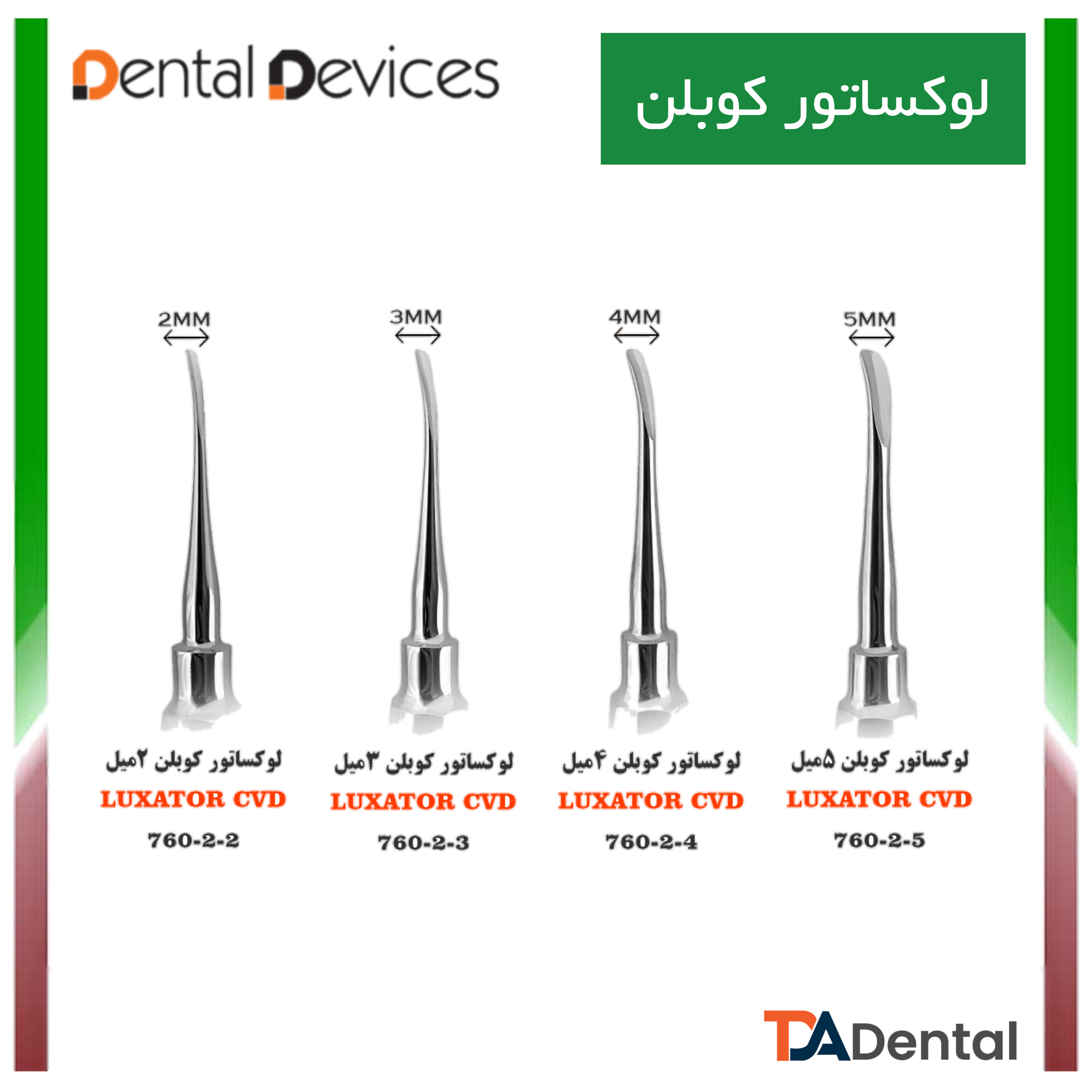 - نوک تیز و باریک: نفوذ دقیق بین دندان و استخوان برای جدا کردن آسان ریشه.