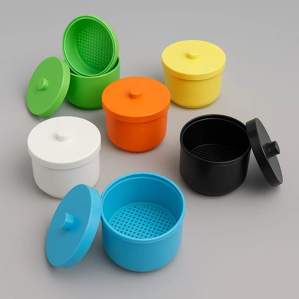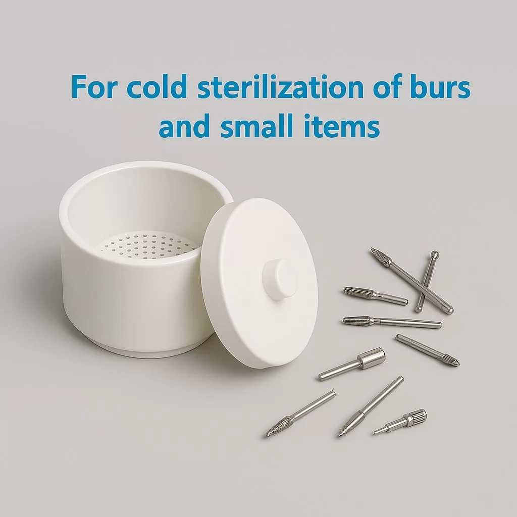ویژگیهای کلیدی این محصول شامل درب محکم با قفل آسان، ظرفیت مناسب برای تعداد زیادی فرز، و سازگاری با فرآیندهای استریلاسیون استاندارد (مانند اتوکلاو) است.