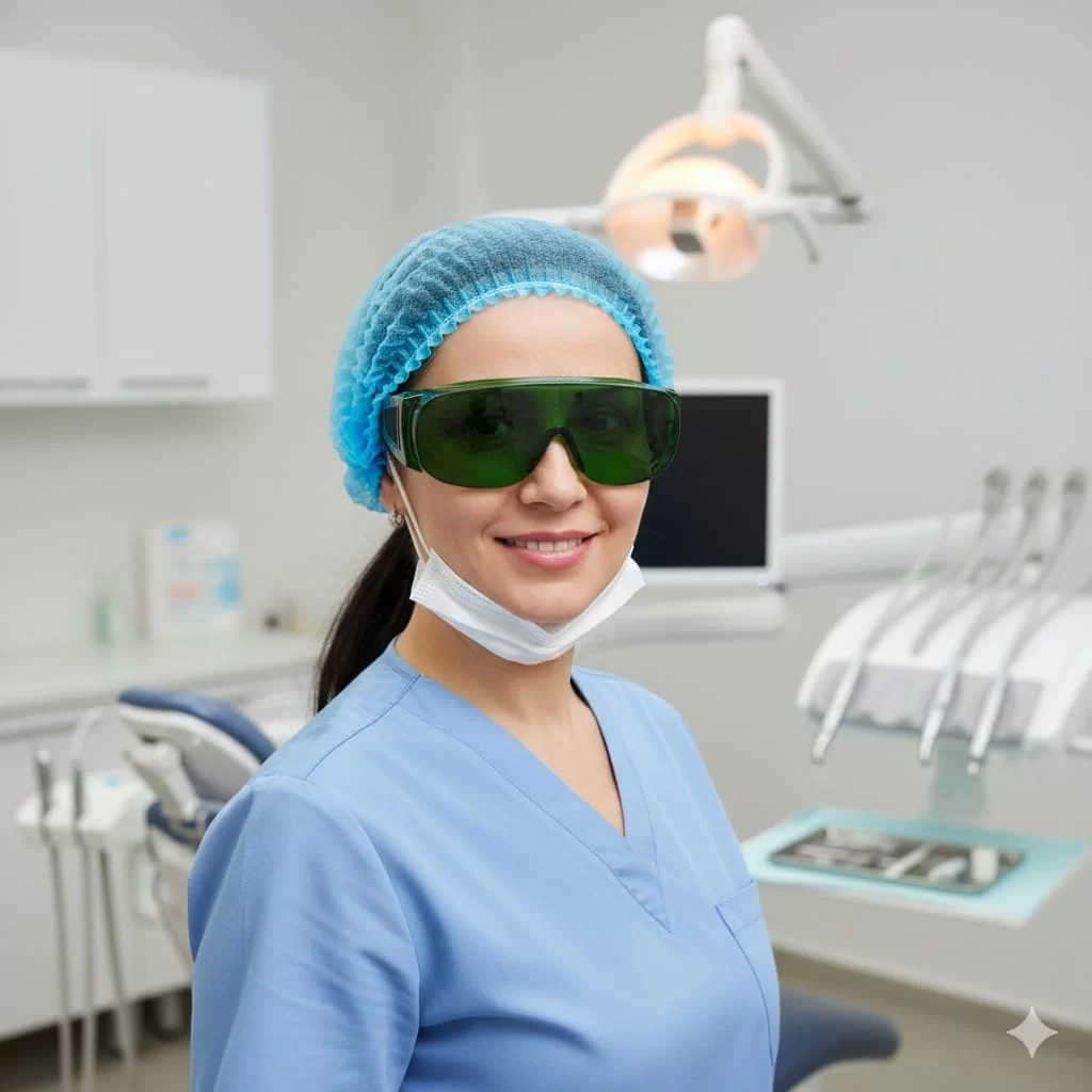 عینک محافظ سبز برای بیمار، محصولی باکیفیت و ضروری برای حفاظت از چشم بیماران در حین درمانهای دندانپزشکی و لیزر است. این عینکها از جنس پلیکربنات مقاوم با رنگ سبز تیره طراحی شدهاند که از ورود نور شدید و اشعههای مضر به چشم جلوگیری میکند.