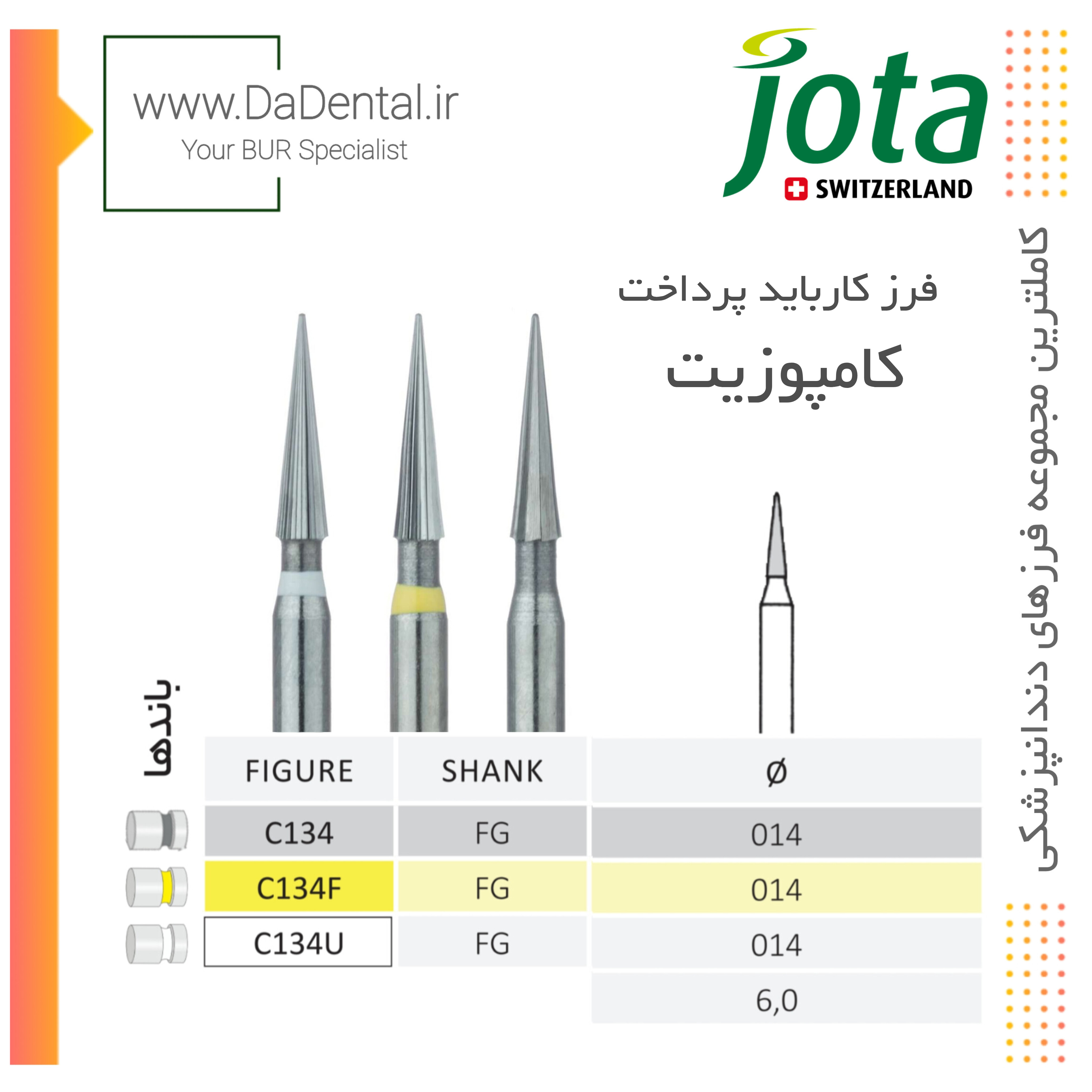 فرز کارباید نیدل کوتاه پرداخت کامپوزیت مخصوص توربین جوتا jota کد C134 FG