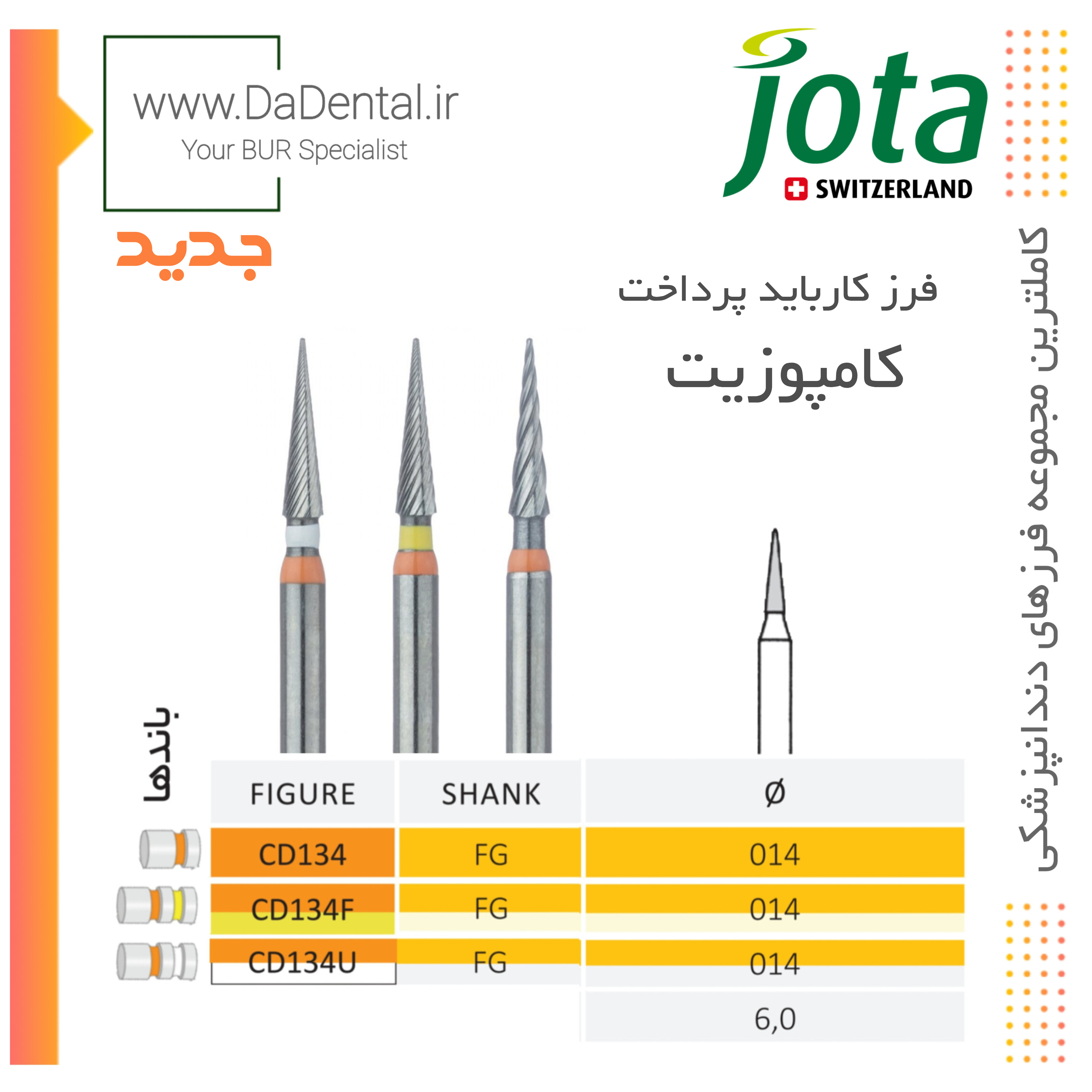 فرز کارباید نیدل کوتاه پرداخت کامپوزیت (سری جدید) مخصوص توربین جوتا jota کد CD134 FG
