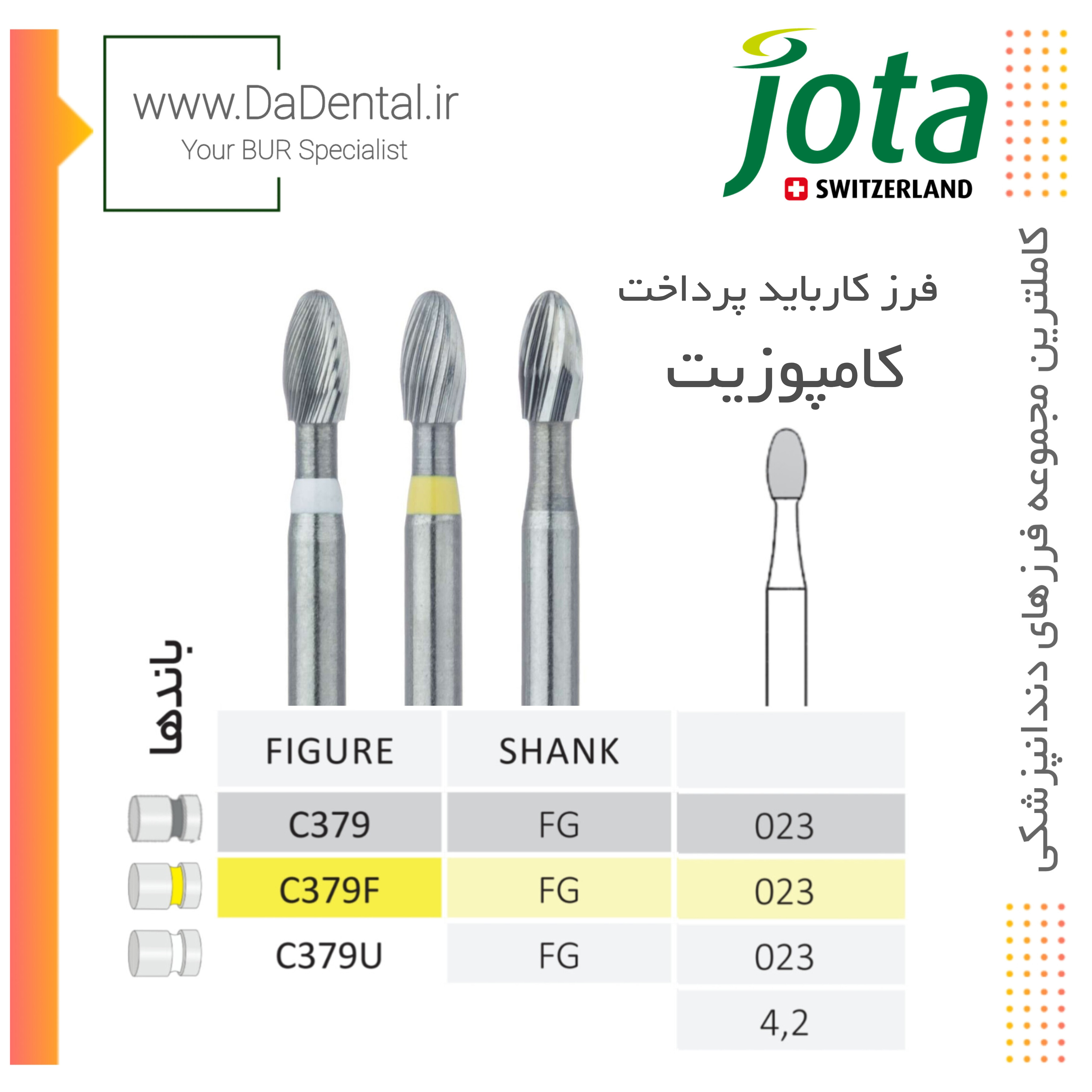 فرز کارباید تخم مرغی پرداخت کامپوزیت مخصوص توربین جوتا jota کد C379 FG